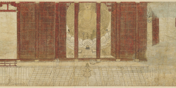 摘抄:大都会艺术博物馆藏《药师佛佛会图》(印刷尺寸980mm×1978mm),主尊为药师佛,左右胁侍文殊和观音二菩萨,构成“佛三尊”组合,周围簇拥着日光遍照、月光遍照和药王、药上等八大菩萨,八大菩萨两外侧是药师佛的十二位神将,左右各六位。